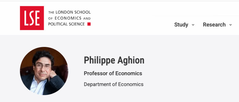 Philippe Aghion,现任法国科学院、欧洲工商管理学院以及伦敦政治经济学院的教授。他是计量经济学会和美国艺术与科学院的院士。他的研究主要集中在经济增长领域。以下为其在伦敦政治经济学院官网的介绍: